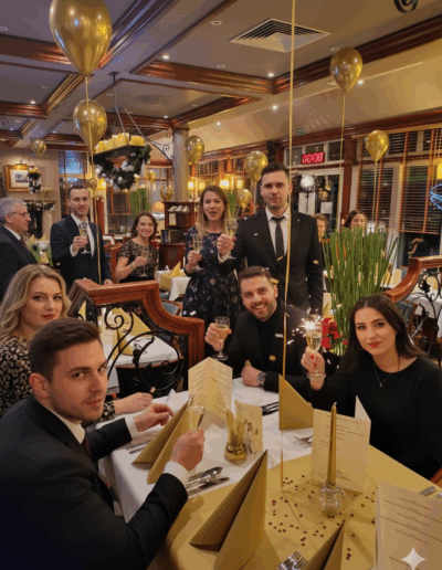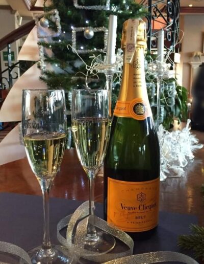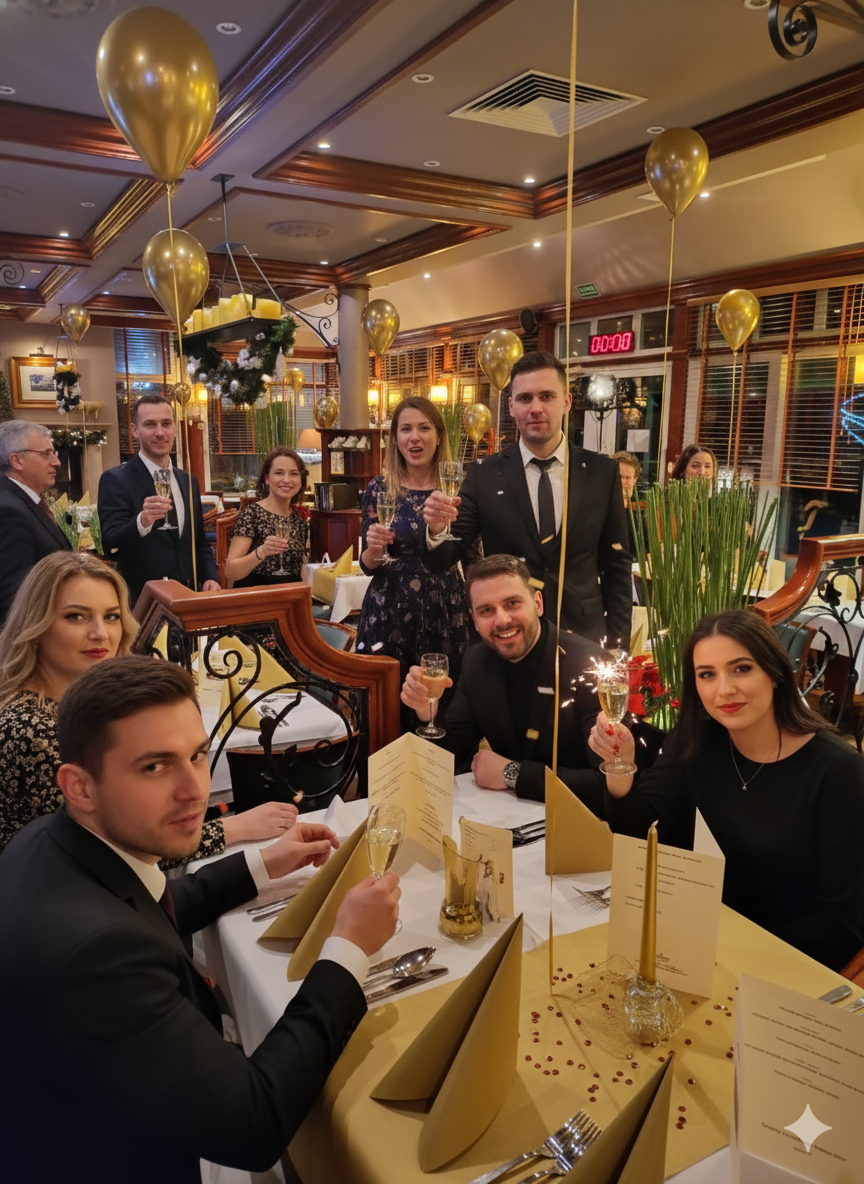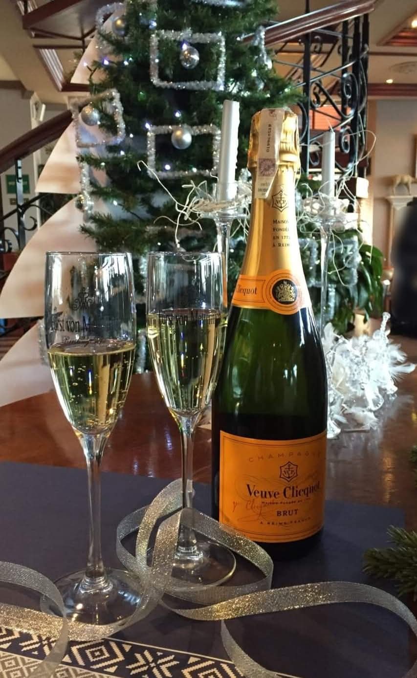 Wykwintna kolacja sylwestrowa z czterodaniowym menu, drinkiem powitalnym, kieliszkiem francuskiego wina , digestifem i kieliszek szampana o północy – wszystko przy dźwiękach muzyki na żywo
